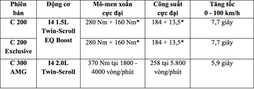 - Động cơ 1.5L tăng áp tích hợp EQ Boost trên C 200, C 200 Exclusive