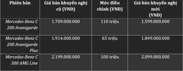 Theo đó, mức điều chỉnh cao nhất là 110 triệu trên phiên bản Mercedes-Benz C 200 Avantgarde, giảm từ 1.709.000.000VNĐ xuống còn 1.599.000.000VNĐ.