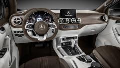 Bên trong không gian nội thất, các phiên bản của X-Class vẫn giữ được lối thiết kế đặc trưng của gia đình Mercedes-Benz với bảng điều khiển bố trí dạng ngang, vô lăng 3 chấu đáy phẳng, lỗ thông gió hình tròn, hệ thống thông tin giải trí COMAND với touchpad cảm ứng, núm xoay cùng một số nút bật/tắt các chức năng khác. Một số yếu tố vay mượn từ Nissan Navara bao gồm: nút khởi động, hệ thống kiểm soát khí hậu, phanh cầm tay...
