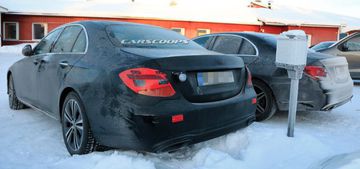Ngoại thất E Class bản nâng cấp có một số chi tiết được sửa đổi ở cả đầu và đuôi xe. Trong đó, mặt trước xe trông hơi giống với CLS phiên bản mới nhất, mà đặc biệt là thiết kế dải đèn Led ban ngày. Phần đuôi xe được trang bị cụm đèn dàn ngang với thiết kế tương tự như trên CLS và CLA hoàn toàn mới.