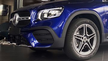 Giá nóc màu nhôm bóng cũng làm tăng tính chất SUV của xe. GLB 200 AMG sử dụng mâm xe AMG 19-inch 5 chấu kép khỏe khoắn. Đèn hậu LED với đồ họa sợi quang theo dạng hộp, giúp xe dễ nhận diện hơn từ phía sau.
