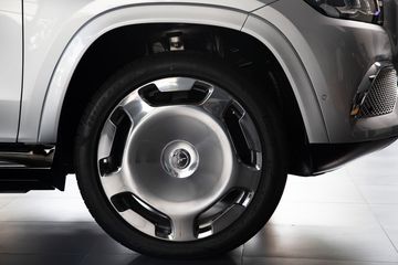Bộ mâm màu xám khói 5 chấu được đúc nguyên khối vốn nổi tiếng trên những chiếc Maybach sedan nay được ưu ái trang bị cho mẫu SUV bản giới hạn này. Bánh xe và ngưỡng cửa cũng được gắn huy hiệu Edition 100.