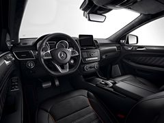 Phía bên trong, ghế ngồi của xe được bọc da Nappa màu đen phối nỉ vi sợi Dinamica, nổi bật với những đường khâu bằng chỉ màu cam và xám. Bên cạnh đó, một số chi tiết khác cũng được nâng cấp bao gồm vô lăng 3 chấy bọc da Nappa, bàn đạp pedal thể thao bằng thép không gỉ, thảm sàn AMG và bảng tablo được ốp nhôm. Ngoài ra, khách hàng cũng có thể lựa chọn thêm "đồ chơi" với 2 gói phụ kiện AMG Line và Night PackAge.