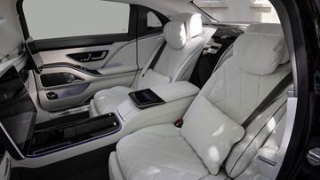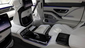 Ngoài ra, trải nghiệm đẳng cấp thương gia trên Mercedes-Maybach S-Class 2022 còn được tăng cường hơn nữa với một số trang bị tùy chọn như khay để cốc có sưởi và làm mát ở bệ tỳ tay trung tâm hàng ghế sau, bàn làm việc với cơ cấu gập thông minh - tương tự như trên ghế hàng không hạng nhất, tủ lạnh đi kèm cặp ly champagne chế tác từ bạc và hệ thống đóng mở/cửa bằng điện kích hoạt thông qua công tắc gắn trên trần xe.