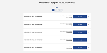 Về kích cỡ, Michelin LTX Trail có dải sản phẩm rất đa dạng trải rộng từ cỡ mâm 15 inch cho đến 18 inch, có thể nói phù hợp cho đa số các mẫu xe SUV/Bán tải hay Crossover tại Việt Nam.
