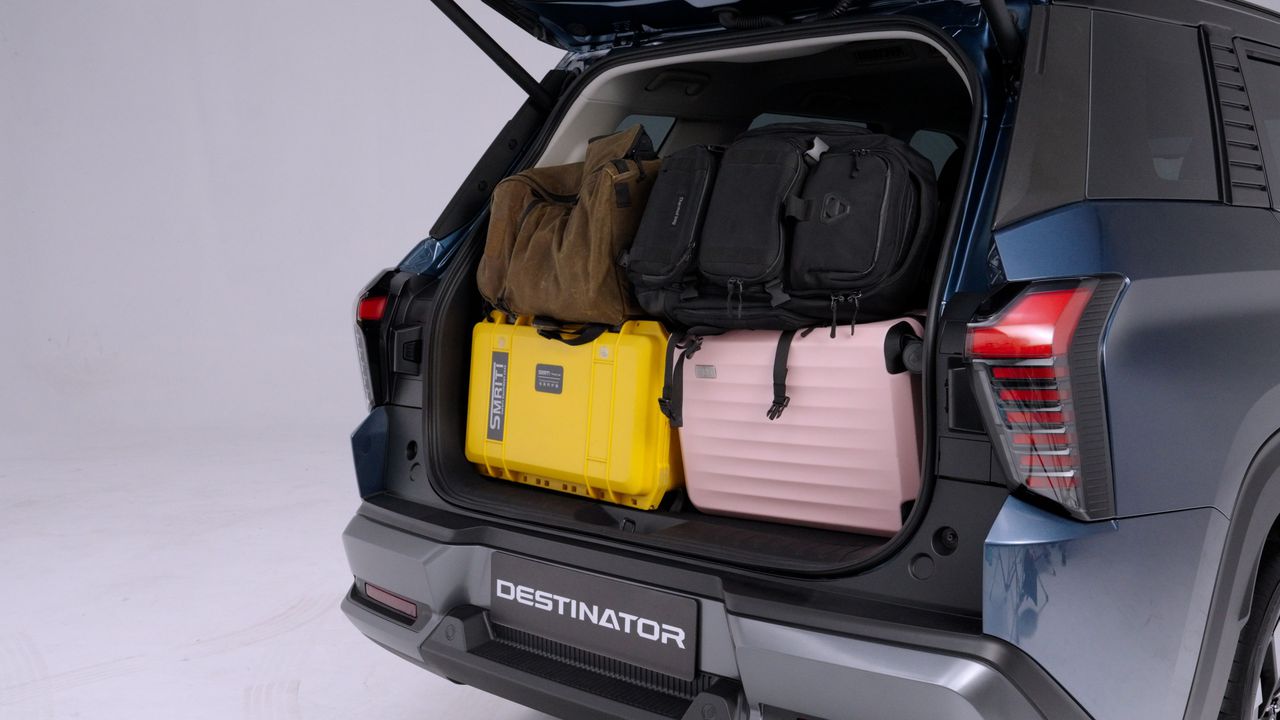 Thiết kế đuôi xe Destinator áp dụng triết lý Hexaguard Horizon cùng những đường nét dập nổi đầy đặn nhấn mạnh tính tiện dụng bên cạnh vẻ ngoài bề thế của xe. Cụm đèn hậu LED hình chữ T tạo cảm giác mở rộng về chiều ngang, trong khi các đường nét đặt dọc của cụm đèn củng cố thêm sự ổn định và vững chãi.