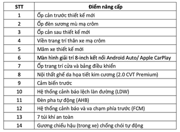 o Hệ thống cảnh báo và giảm thiểu va chạm phía trước (FCM) giúp giảm mức độ nghiêm trọng và hạn chế tối đa khả năng xảy ra va chạm phía trước.