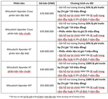 Sở hữu những trang bị nâng cấp thiết thực và tiện dụng, Mitsubishi Xpander và Mitsubishi Xpander Cross phiên bản đặc biệt có mức giá bán không đổi 630.000.000 VNĐ và 670.000.000 VNĐ. Khách hàng có thể đặt xe thông qua website https://xpander.vn/ hoặc liên hệ các nhà phân phối ủy quyền của MMV trên toàn quốc từ ngày 13/12/2021 đến trước kì nghỉ Tết Nguyên đán.