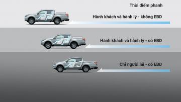 Trang bị tiêu chuẩn cho cả bốn phiên bản Triton, hệ thống chống bó cứng phanh ABS sẽ duy trì khả năng điều khiển xe để tránh chướng ngại vật một cách an toàn khi phanh gấp. Tiếp đến, hệ thống phân bổ lực phanh EBD sẽ giúp rút ngắn quãng đường phanh tối đa khi tải trọng thay đổi nhờ vào việc phân bổ lại lực phanh của các bánh xe hiệu quả nhất.