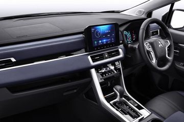 Nội thất Xpander Cross 2023 cũng được lấy cảm hứng thiết kế từ Xpander và được trang bị màn hình trung tâm đặt nổi kích thước 9 inch, cụm điều khiển điều hoà bằng nút bấm, phanh tay điện tử...