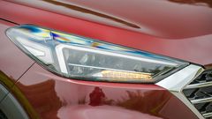 Điểm thay đổi lớn nhất ở thiết kế ngoại thất Hyundai Tucson 2019 là phần đầu xe. Trong đó, cụm lưới tản nhiệt được tạo hình dạng Casading Grille, tương tự Elantra hay Santa Fe mới. Cụm đèn pha LED được cấu tạo từ 5 tinh cầu thủy tinh, vuốt mỏng hơn sang hai bên cùng dải đèn LED ban ngày hình chữ L.