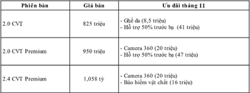 Trong tháng 11 này, Mitsubishi sẽ tặng thêm 50% phí trước bạ bên cạnh mức giảm của chính phủ cho các phiên bản Outlander động cơ 2.0 lít đi kèm các quà tặng hấp dẫn. Như vậy, khách hàng mua xe Outlander sẽ có mức giá lăn bánh gần bằng giá bán niêm yết.