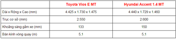 Bên cạnh Vios, phân khúc B còn có Hyundai Accent thế hệ mới cũng đang nhận được nhiều sự quan tâm từ khách hàng. Trong đó biến thể số sàn Accent 1.4 MT chính là đối thủ cạnh tranh trực tiếp với Vios E.
