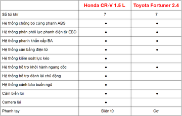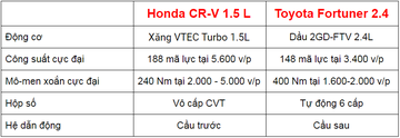 Đều được nhập khẩu nguyên chiếc, tầm tiền xấp xỉ nhau và cùng cấu hình 7 chỗ, Honda CR-V 1.5 L hay Toyota Fortuner 2.4 sẽ phù hợp với nhu cầu của bạn hơn ?