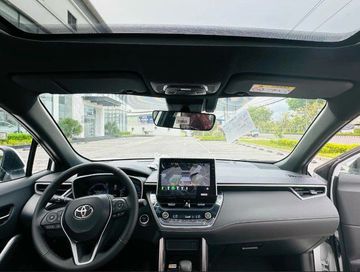 Bên trong nội thất, Toyota Corolla Cross 2024 nhận được một số thay đổi như đồng hồ lái chuyển sang dạng màn hình 12,3 inch, màn hình trung tâm nâng kích thước lên 10 inch, hỗ trợ Apple CarPlay, Android Auto không dây. Xe có phanh đỗ điện tử với chức năng giữ tự động, sạc điện thoại không dây, cửa sổ trời toàn cảnh.