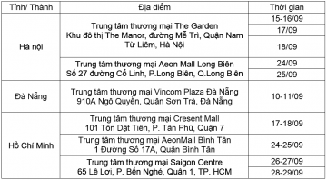 1. Trưng bày xe tại chuỗi trung tâm thương mại ở 3 thành phố lớn trên cả nước: Hà Nội, TP. Hồ Chí Minh, Đà Nẵng.