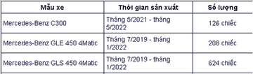 Theo thống kê số lượng xe được sản xuất từ tháng 5/2021 đến tháng 5/2022 có đến 126 chiếc C300 được nhập khẩu nguyên chiếc từ Đức và buộc phải triệu hồi.