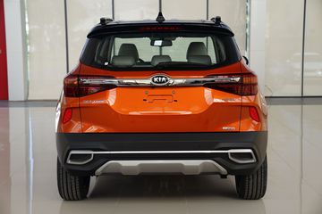 Phần đuôi của Kia Seltos nổi bật với cụm đèn hậu LED kéo dài theo phương ngang, đặt đối xứng qua logo Kia bằng thanh chrome cỡ lỡn. Ngay bên dưới là ốp cản sau sơn đen, kết hợp chụp ống xả kép và ốp gầm mạ bạc giúp hoàn thiện vẻ ngoài hiện đại, mạnh mẽ và đậm chất địa hình của xe.