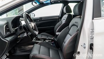 Không gian bên trong cũng rất bắt mắt với tone màu đen chủ đạo, mạnh mẽ và cuốn hút hơn so với màu be tiêu chuẩn. Ghế lái và ghế phụ trước được bọc da cao cấp và khâu chỉ đỏ, thiết kế ôm sát phần hông cho cảm giác thể thao, cũng như giúp người lái đỡ mỏi hơn khi đi đường dài. Mặt Tablo cũng được trang bị da, các mảng nhựa cao cấp cùng với các chi tiết mạ chrome sang trọng hơn.