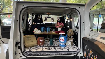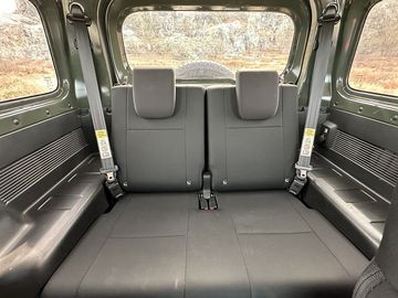 Hàng ghế thứ hai của Jimny khá rộng rãi, đủ chỗ ngồi cho hai người lớn. Khoang hành lý của Suzuki Jimny chỉ có thể tích 85 lít, lên tới 388 lít khi gập phẳng hàng ghế thứ hai, người dùng có thể thoải mái chuyên chở hành lý hay đồ dùng có kích thước lớn, đặc biệt tiện dụng khi đi cắm trại hay du lịch dài ngày. Đặc biệt, bên trái hàng ghế thứ hai trang bị một cổng sạc tẩu 120W, tiện dụng để sạc điện thoại, laptop hoặc một số thiết bị điện khi đi cắm trại.