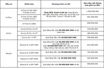 Từ ngày 01.05.2020 đến hết ngày 31.05.2020, Nissan Việt Nam tiếp tục mang đến chương trình ưu đãi đón hè đặc biệt cho khách hàng mua xe trong tháng 5. Theo đó, khách hàng mua xe trong thời điểm này sẽ nhận được quà tặng tiền mặt giá trị và các gói quà tặng phụ kiện hấp dẫn.