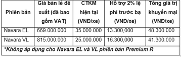 Cụ thể, phiên bản Navara EL có mức giảm 48.300.000, phiên bản Navara VL có mức giảm 41.300.00 đồng: