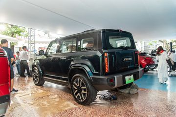 Ngoại hình vuông vức gợi liên tưởng đến các mẫu xe địa hình cao cấp, điểm xuyết bằng dải LED định vị thẳng đứng, sơn hai tông màu và giá nóc tiêu chuẩn.