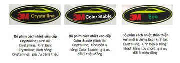 Khi chọn bộ sản phẩm phim cách nhiệt siêu cấp Crystalline, tất cả các kính xe của khách hàng đều được dán mã phim Crystalline (CR) với độ xuyên sáng từ 20 đến 70 . Với bộ sản phẩm Color Stbale, kính lái của khách hàng được dán mã phim Crystalline (CR) và các kính còn lại (kính bên, kính hông) được dán mã phim Color Stable. Còn với bộ sả phẩm phẩm phim cách nhiệt thân thiện môi trường Eco khách hàng được tùy chọn các mã sản phẩm hiện 3M đang cung cấp trên thị trường như MS, BS.