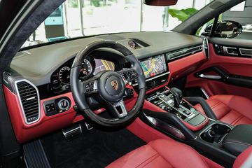Bên trong, nội thất Cayenne Turbo có nhiều trang bị tiện nghi hiện đại và đậm chất thể thao. Tất cả các chức năng trên xe đều được kết nối, hiển thị và điều khiển thông qua màn hình cảm ứng trên khoang lái, đi kèm là hệ thống âm thanh vòm Bose có công suất 710 watts dưới dạng tiêu chuẩn.