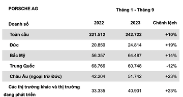 Trong ba quý đầu năm, tổng số xe Porsche đã giao đến khách hàng đạt 242.722 chiếc. Con số này tương đương mức tăng 10% so với cùng kỳ năm ngoái.