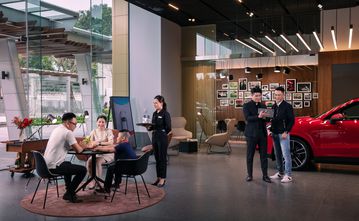 Điểm đến mới của Porsche có các khu vực dành riêng để khách hàng được tư vấn và tạo cấu hình cho mẫu xe thể thao mong muốn. Trong đó, một số vị trí được trang bị màn hình trình chiếu độc lập tích hợp tại bàn, khách hàng có thể trực tiếp quan sát chiếc xe được cấu hình với định dạng thực tế ảo tăng cường (AR).