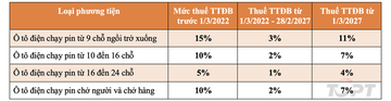 Từ ngày 1/3/2022, Chính phủ quyết định giảm thuế tiêu thụ đặc biệt về 3% đối với các dòng xe dưới 9 chỗ (trước sửa đổi là 15%). Với các ô tô điện trên 9 chỗ ngồi, mức thuế tiêu thụ đặc biệt được điều chỉnh như sau:
