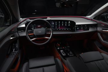 Nội thất của Audi Q6 e-tron được thiết kế tập trung vào nhu cầu của người dùng hơn bao giờ hết. Các bề mặt ốp trên bảng táp-lô được trang bị tiêu chuẩn với sơn màu xám núi lửa hiệu ứng sơn mài.