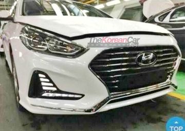 Trở lại phần đầu xe, tương tự như những hình ảnh đã được tiết lộ trước đó, Hyundai Sonata 2018 sở hữu thiết kế lưới tản nhiệt như trên người anh em i30 phiên bản mới ở các chi tiết như lưới tản nhiệt, cụm đèn sương mù, thêm đèn DRL. Một dải chrome cũng được viền chạy từ cản trước tới cụm đèn, tăng thêm vẻ mạnh mẽ và độc đáo cho mẫu xe.