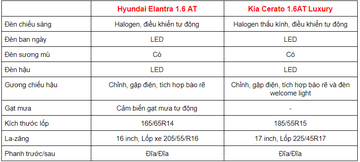 Trang bị tiện nghi trên Cerato 1.6 Luxury và Hyundai Elantra 1.6AT đều có hệ thống đề nổ bằng nút bấm, chìa khóa thông minh, điều hòa không khí tự động 2 vùng độc lập với chức năng khử ion, cửa sổ trời chỉnh điện… Tuy nhiên Cerato đáp ứng tốt hơn nhu cầu sử dụng của khách hàng khi có thêm nhiều trang bị tiện nghi khác mà Elantra không có được như: Ghế lái chỉnh điện 10 hướng, gương chiếu hậu trong xe chống chói, tính năng điều khiển hành trình. Hyundai Elantra được trang bị thêm tính năng tương thích Apple CarPlay dễ dàng kết nối điện thoại iPhone.