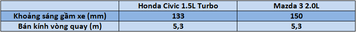 Có thể nói, Honda Civic 1.5L Turbo và Mazda 3 2.0L là "một chín một mười" trên những phương diện đã so sánh. Vấn đề còn lại chỉ là hầu bao và cá tính của mỗi người. Chọn Mazda 3, bạn có một chiếc xe trẻ trung, giá bán xứng đáng với trang bị, an toàn đầy đủ và gầm cao không ngại leo vỉa. Còn dư dả hơn và sẵn sàng bỏ thêm 168 triệu, bạn sẽ sở hữu chiếc xe luôn nổi bật trong đám đông, cảm giác lái tuyệt vời, một số trang bị nổi trội hơn cùng sự thoải mái ở hàng ghế sau.