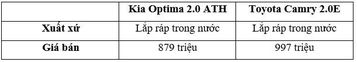 Cả 2 mẫu sedan hạng D đều được lắp ráp trong nước, tuy nhiên đối thủ xuất xứ từ Hàn Quốc lại có giá bán tốt hơn so với Camry, rẻ hơn 118 triệu Đồng.