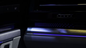 Không dễ để tìm thấy một mẫu xe có đến 17 hộc đựng đồ bố trí dàn trải bên trong, cổng sạc kết nối điện thoại cho mọi vị trí ngồi, đèn viền nội thất Ambient Lighting, điều hòa 3 vùng độc lập. Chất liệu da bọc ghế mềm mại, nâng đỡ hành khách trong mọi hành trình. Với riêng vị trí tài xế, ghế là loại chỉnh điện, nhớ vị trí, bơm hơi tựa lưng.