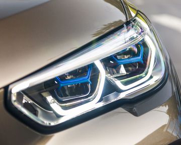 Trên X5 xDrive40i xLine Plus, cụm đèn BMW Laserlight tăng tầm chiếu xa lên 500 mét. Điểm nhấn của hệ thống đèn BMW Laserlight là chi tiết màu xanh hình chữ X nằm giữa các khối đèn lục giác bên trong cụm đèn.