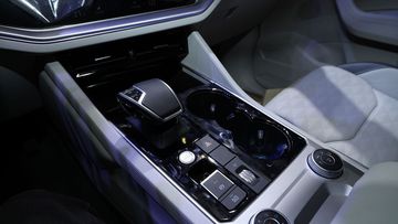 Cần số Volkswagen Touareg có kích thước gọn gàng, thiết kế vừa vặn trong nắm tay của người dùng. Tất nhiên đây là cần số điện tử với thao tác sử dụng rất cao cấp. Vị trí cần số đặt thấp, gần sát với bề mặt bệ điều khiển giữa hàng ghế trước, tạo cho khu vực điều khiển sự tinh giản, hiện đại.