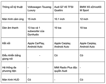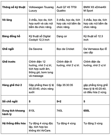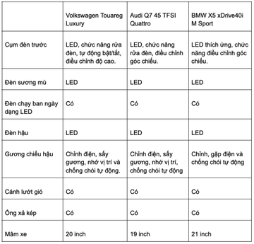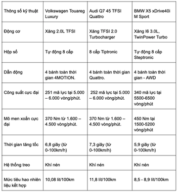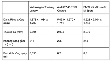 So sánh 3 mẫu xe SUV hạng sang BMW X5, Audi Q7 và Volkswagen Touareg