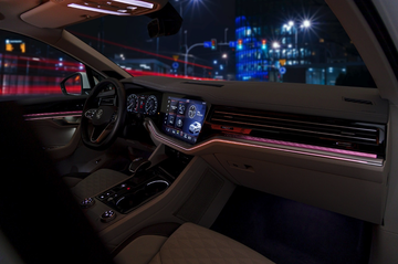 Volkswagen Touareg có không gian khoang lái sở hữu nét hiện đại, phá cách với thiết kế bảng táp lô nghiêng về phía lái xe. Đây là điều chỉnh cần thiết khi mẫu xe này hướng đến khách hàng cá tính, trẻ trung và năng động hơn so với 2 mẫu SUV 7 chỗ Tiguan và Teramont.