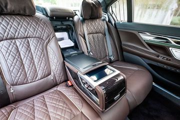 Hệ thống giải trí cho hàng ghế sau trên 730Li Pure Excellence và 740Li Pure Excellence bao gồm hai màn hình cảm ứng độ phân giải full-HD kích thước 10 inch có thể điều chỉnh góc nhìn, kết hợp với đầu đĩa Blu-ray.