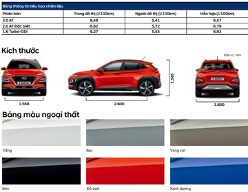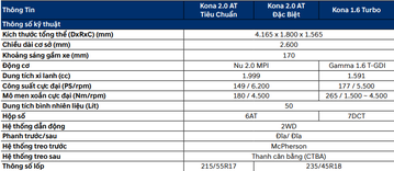 Nhằm giúp độc giả có cái nhìn bao quát hơn về Hyundai Kona 2018, danhgiaXe sẽ so sánh nhanh thông số kỹ thuật, trang bị tiện nghi cũng như động cơ của cả 3 phiên bản như sau: