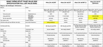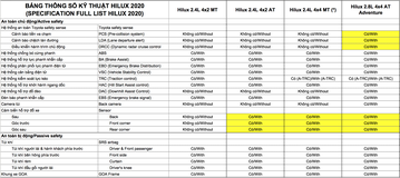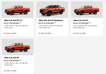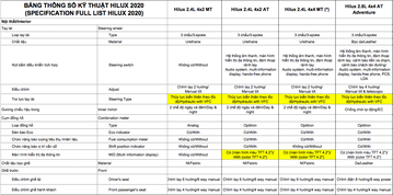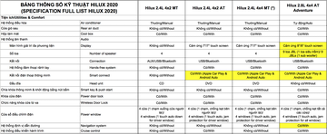 So sánh 4 phiên bản Toyota Hilux 2020 tại Việt Nam