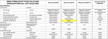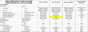 Có thể thấy, ngoại hình đẹp lung linh của Hilux 2020 với cụm đèn pha full led chỉ có mặt trên phiên bản cao cấp nhất là 2.8 4x4 AT. Còn 3 phiên bản còn lại chỉ là đèn halogen.