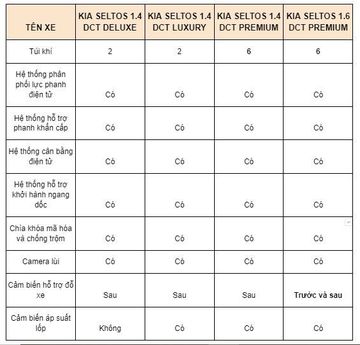 | Seltos 1.4 DCT Deluxe | 639,000,000 | Không có |