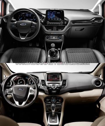 Bên trong, Fiesta mới nâng cấp về mặt chất lượng tốt hơn và có rất nhiều trang bị đi kèm theo xe. Ngoài ra, xe còn được cải tiến thiết kế với những nút xoay điều chỉnh nhiệt độ và màn hình cảm ứng chạy phần mềm SYNC3 hiển thị thông tin (kích thước 6,5-inch ở gói trang bị chuẩn và 8-inch trên phiên bản Titanium và Vignale) hỗ trợ tương thích Apple Carplay và Android Auto.