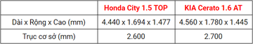 Để phù hợp khi “cân đo đong đếm”, danhgiaXe hôm nay sẽ sử dụng hai phiên bản là Honda City 1.5 TOP và KIA Cerato 1.6 AT có giá bán chênh lệch chỉ 10 triệu đồng.