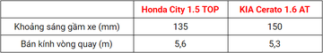 KIA Cerato đều có khoảng sáng gầm xe và bán kính vòng quay tốt hơn, cho khả năng leo vỉa và di chuyển linh hoạt hơn trong đô thị.
